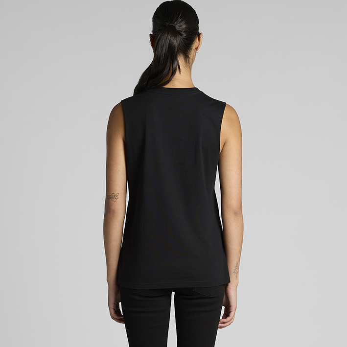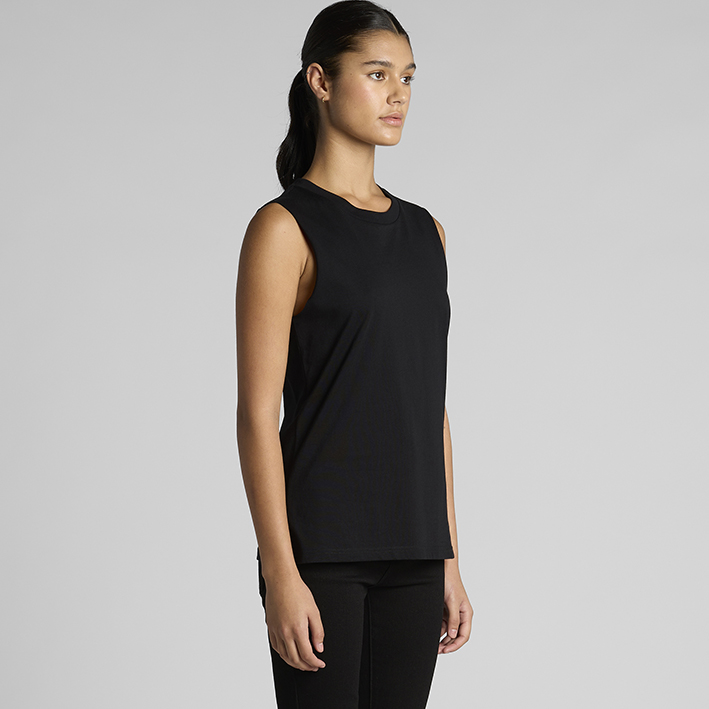 Sleeveless tank, raw armhole edges, neck ribbing, side seamed, shoulder to shoulder tape, double needle hem, preshrunk to minimise shrinkage